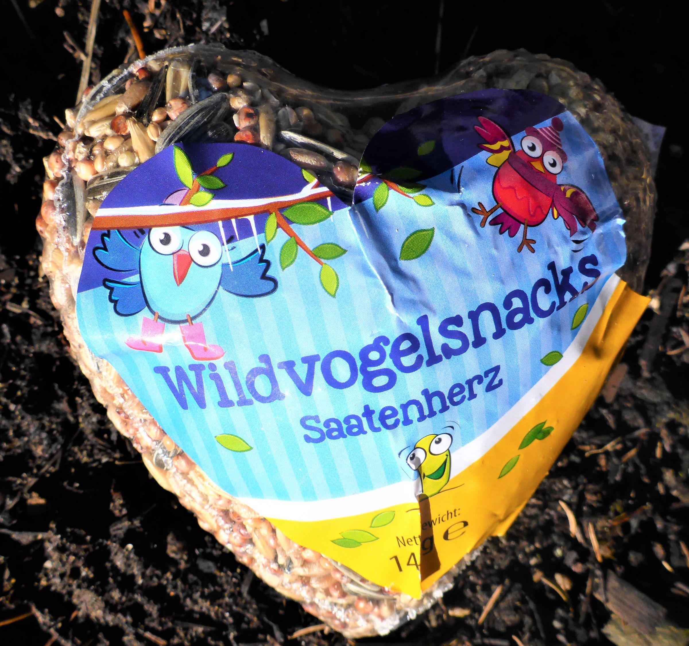 Schwere Zeiten auch für die Vögel - gerade im Winter, wenn sie noch weniger Nahrung finden als sonst in unserer weitgehend ausgeräumten Kulturlandschaft. Was liegt näher, als unser "Herz für Tiere" zu zeigen, indem wir z. B. die Wildvögel in unseren Gärten und Parks füttern. Der Handel sieht ein Geschäft: Supermärkte und Baumärkte bieten ein reiches Angebot an Futterhäuschen und Futtersilos, Meisenknödeln und Kompositionen von Vogelfutter in allen Varianten, bis hin zur Herzform.