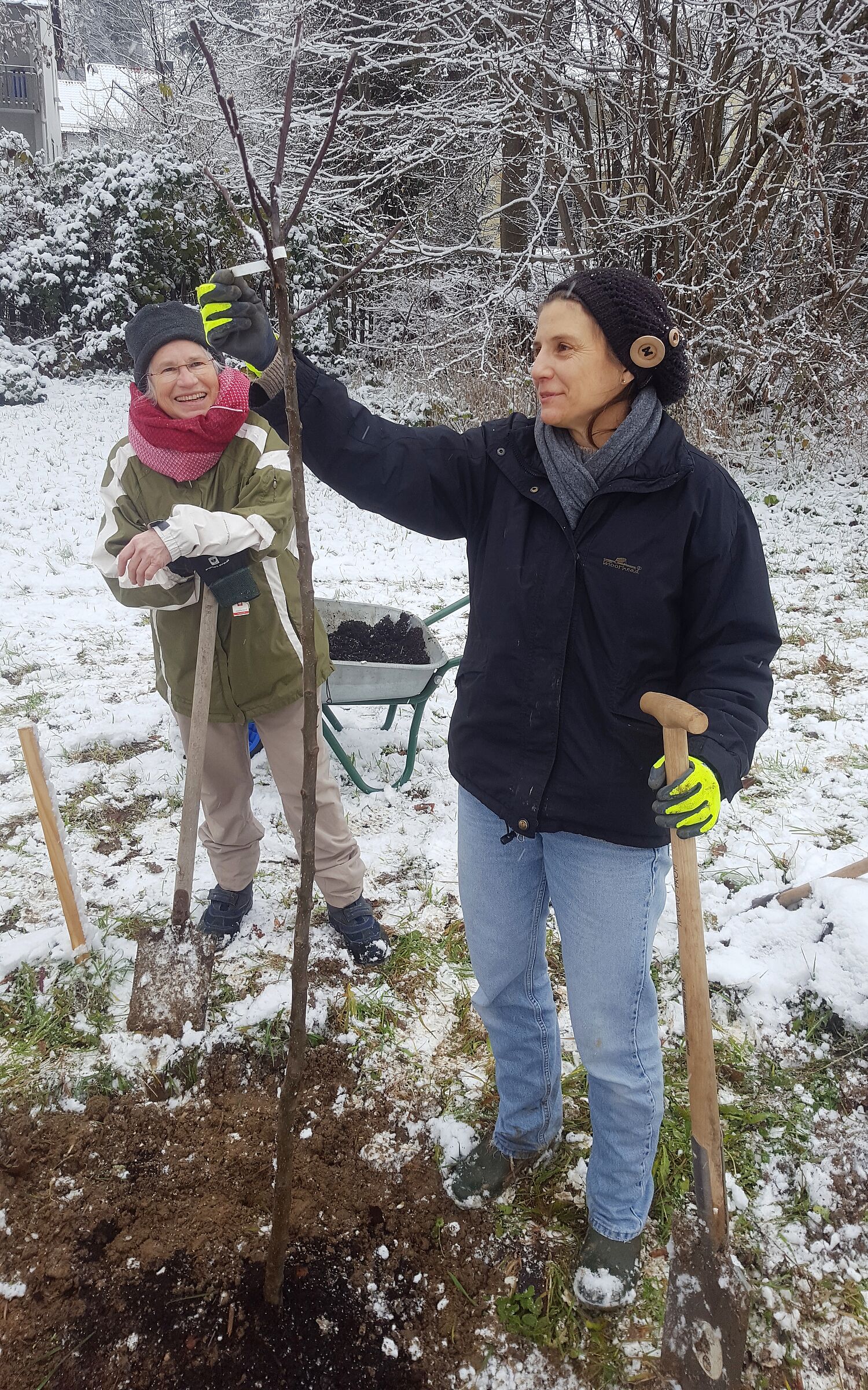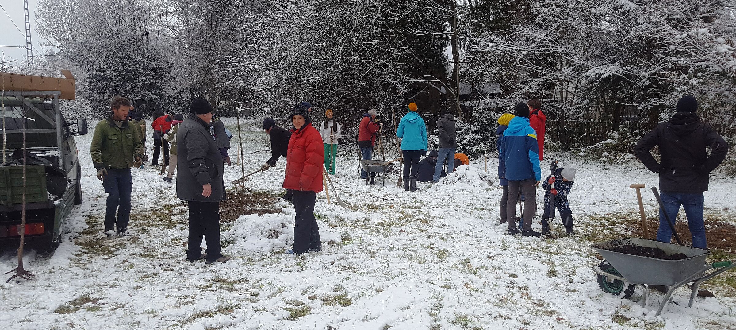 In Aktionen am 10.12.2022 und 20.04 2023 pflanzten zahlreiche Mitglieder der Genossenschaft eine direkt neben der S-Bahn-Station Schäftlarn-Ebenhausen gelegene gemeindliche Wiese und rund um den Solawi-Acker bei Münsing herum Apfelbäume. In ein paar Jahren werden dann Äpfel alter, wohlschmeckender Sorten die Gemüsekisten der SOLAWI bereichern. Für den 20.5.2023 ist ein weiterer Pflanztag auf dem Acker angesetzt. Dann kommen Sellerie, Weißkraut, Wirsing und Kürbis als Jungpflanzen in die Erde.