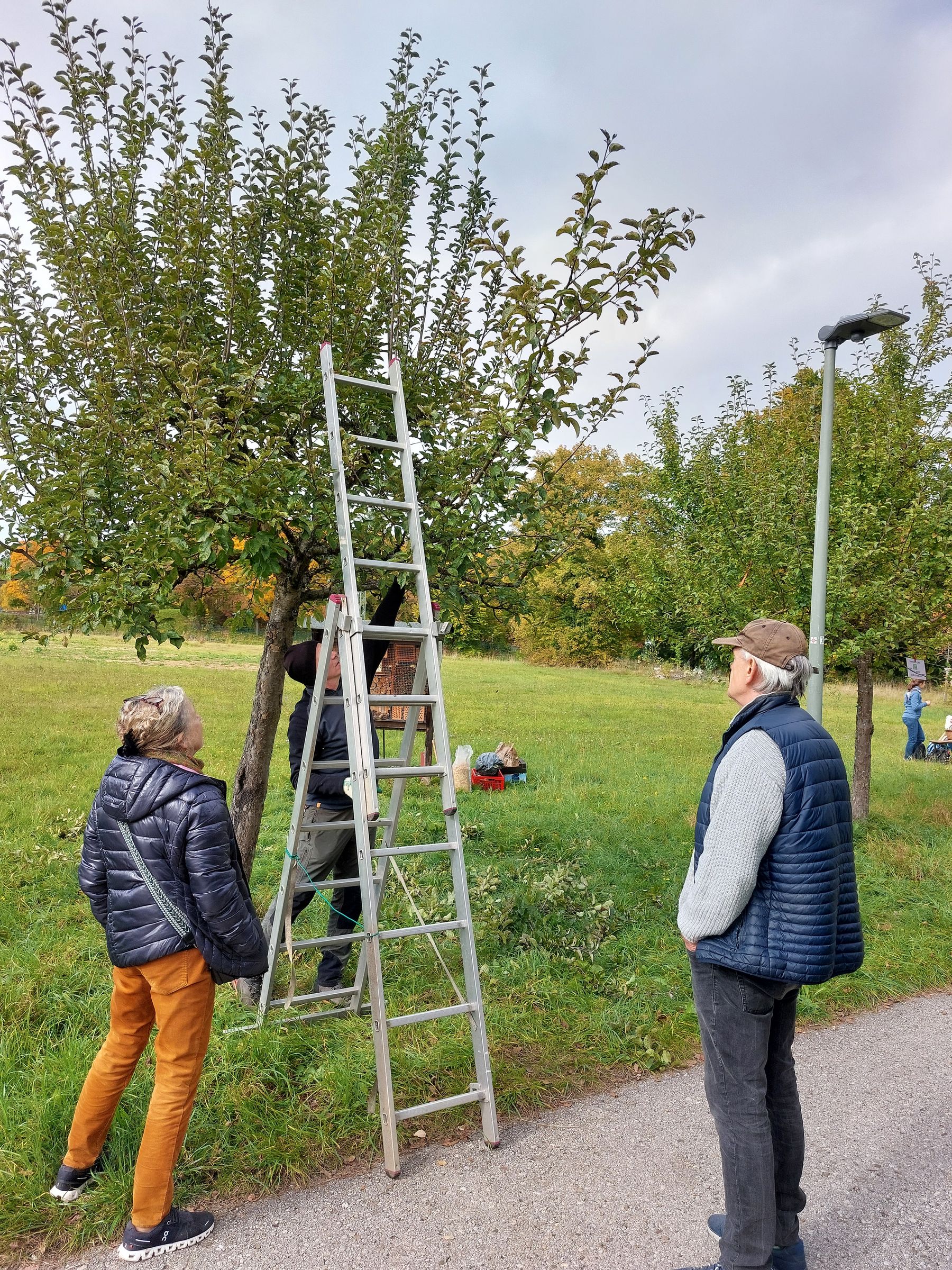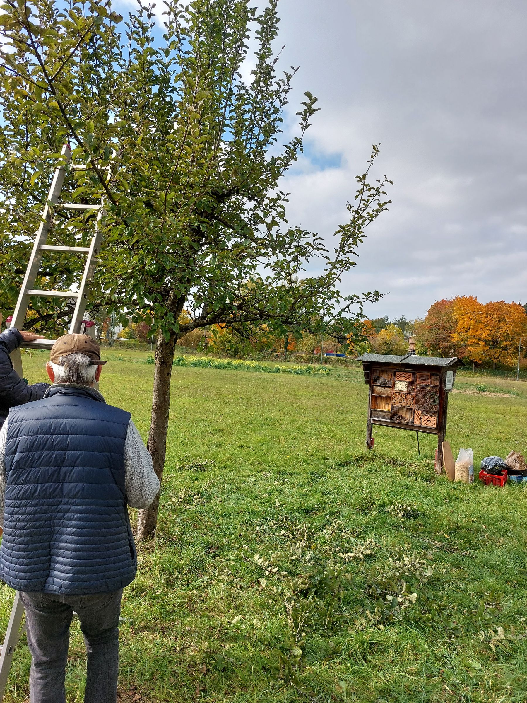 Rund um das Apfelfest haben wir noch Aktionen durchgeführt, eine teilweise Neubefüllung unseres großen Insektenhotels, eine Einführung in den richtigen Obstbaumschnitt durch W. Baumgärtner vom Umweltamt der Gemeinde und die Pflanzung eines neuen Apfelbaums am nördlichen Ende der Allee.